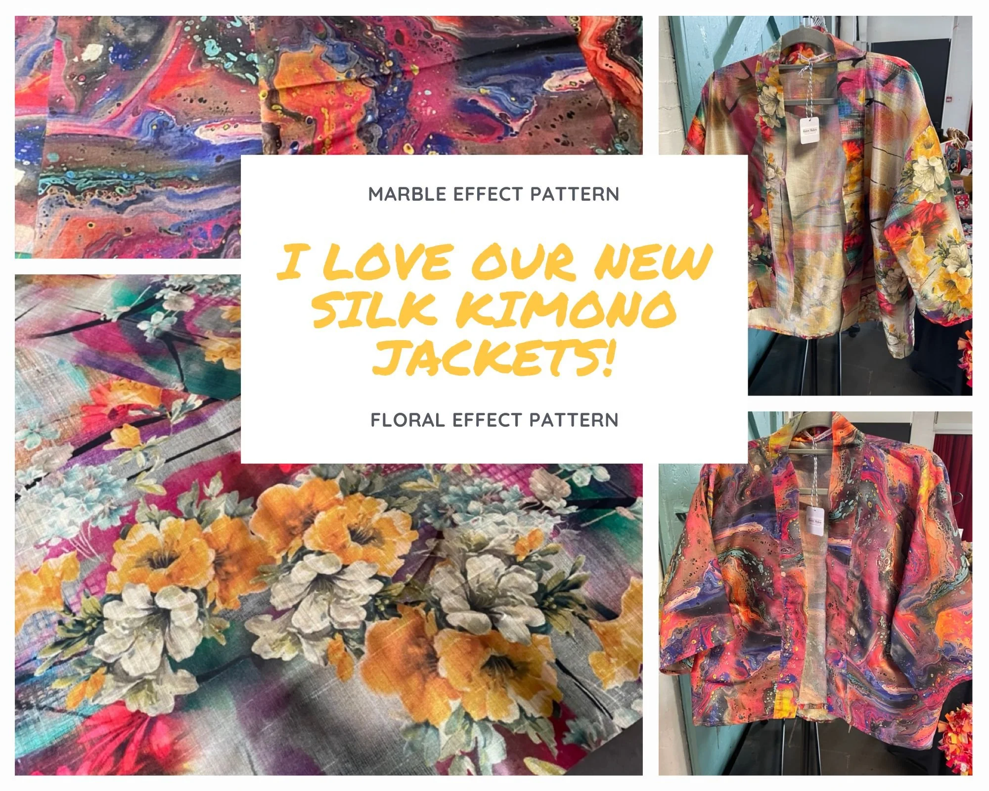 Hello everyone. I hope you have all had a lovely week. We had a lovely time at The Welsh Quilt and Sewing Show last weekend. I have cut out two kimonos in beautiful bamboo silk we bought there. The fabric is gloriously bright and so unique. We couldn’t resist so ended up buying both patterns. Which is your favourite? Claire loves the marble effect silk but I love the floral pattern but I wouldn’t say no to either. I will be sewing them up over the weekend ready for our first fair of the year. Next Saturday and Sunday we will be part of The Vintage and Makers Market at The Swansea Waterfront Museum.